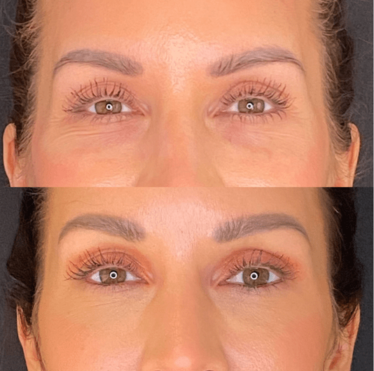 - Tighter skin around the eyes – Collagen production is stimulated, which improves skin texture, fine lines and elasticity.