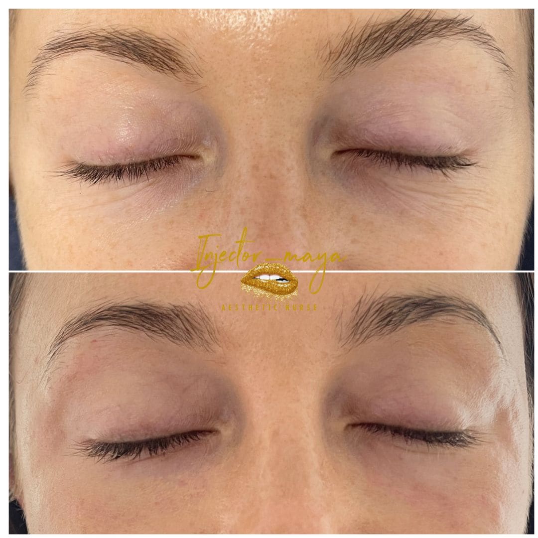 The treated area will be gently sore and red, these symptoms will resolve within first 24 hours. The bruising and swelling may occur. It is worth remembering not to apply makeup for a day after the treatment and to use protective creams with a filter. The treatment does not require any recovery period or special preparation.