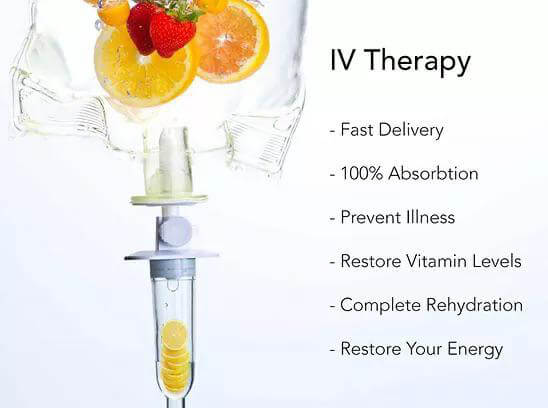 IV Fluids: A sterile saline solution that delivers nutrients directly into your bloodstream, rehydrates your body, and ensures 100% absorption.