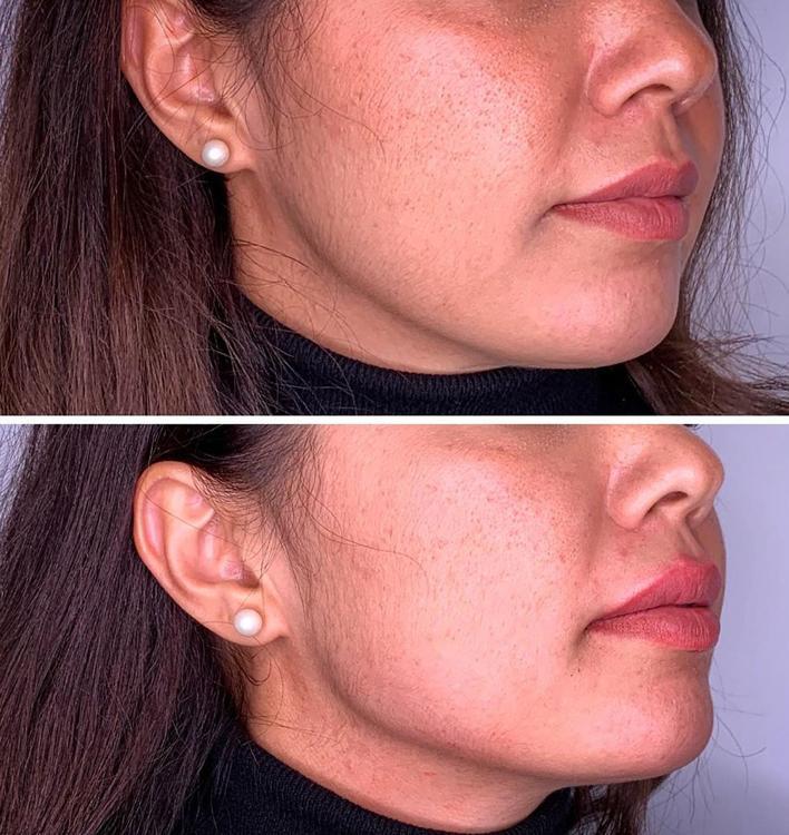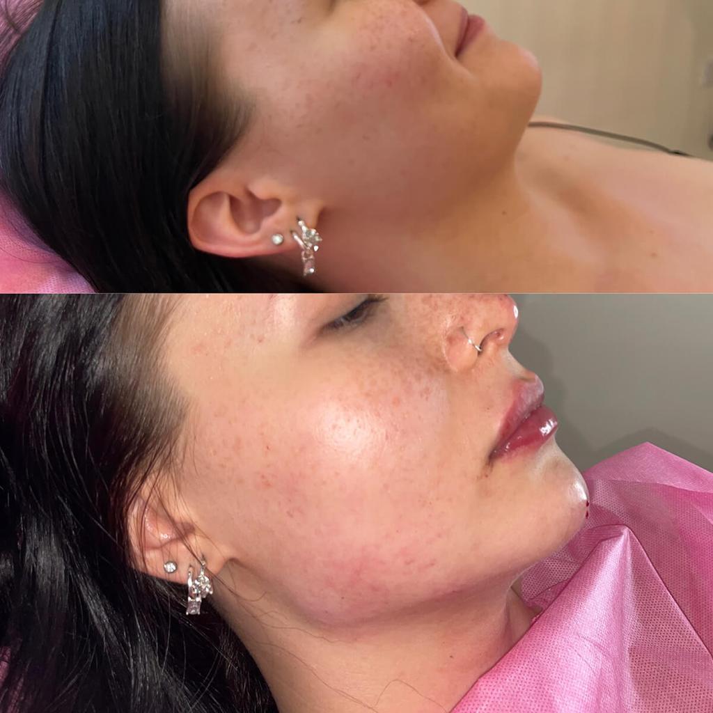 Jawline filler is well tolerated with minimal swelling (some bruising may occur). The final results are normally visible after two weeks. After 2 weeks if you're unhappy with your chin filler results, you would be advised to make a follow-up appointment for review.