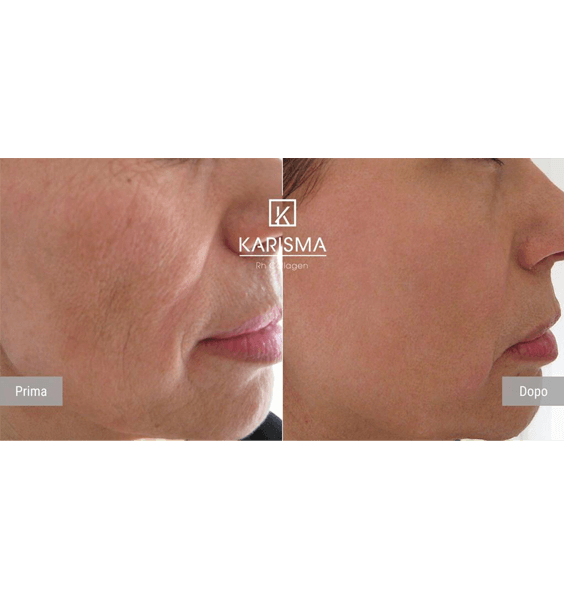 Karisma Rh Collagen skin booster improves the face contour, gives gentle lifting effect, reduces wrinkles, scars, stretch marks, improves the quality and density of the skin.